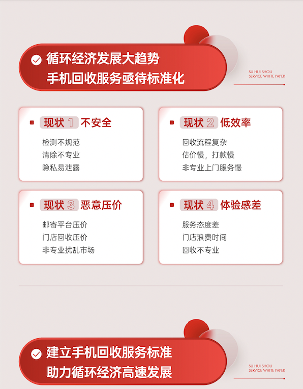 《白皮书》指出:解决社会问题,推动循环经济健康发展,必须定义行业服务标准,并提醒行业所有参与者,提高手机循环积极性,当从服务做起。