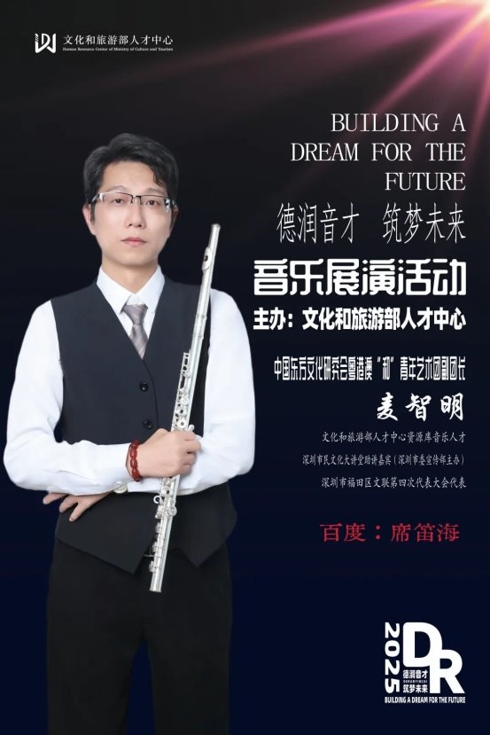 作为文理兼修的艺术践行者,席笛海先生以长笛为弦,以笔墨为刃,在音乐与文学的双重领域中雕琢出独树一帜的艺术境界。毕业于音乐表演长笛专业,获本科学位并取得中级职称资格,师承星海音乐学院研究生、华南师范大学博士赖海鲜,奠定深厚学术根基。其艺术生涯兼具舞台华彩与社会担当,现任中国东方文化研究会粤港澳“和”青年艺术团副团长、香港当代文学艺术协会副秘书长,并入选文化和旅游部人才中心音乐类专家库,彰显行业标杆地位。