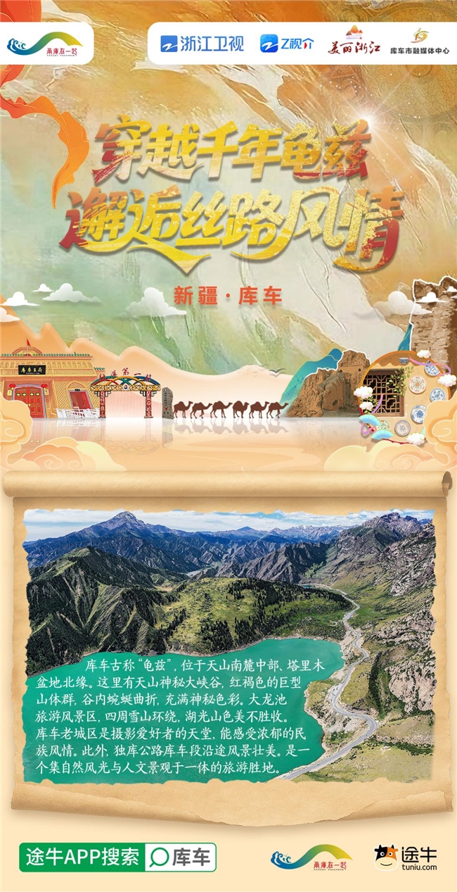 由宁波市援疆指挥部、库车市融媒体中心联合浙江卫视(中国蓝新平台)、美丽浙江融媒矩阵共同推出的“甬库同行·龟兹新韵”线上文旅推广月活动,通过多平台、多形式、多渠道联动,实现了广泛传播与深度触达,总曝光量突破1亿次!