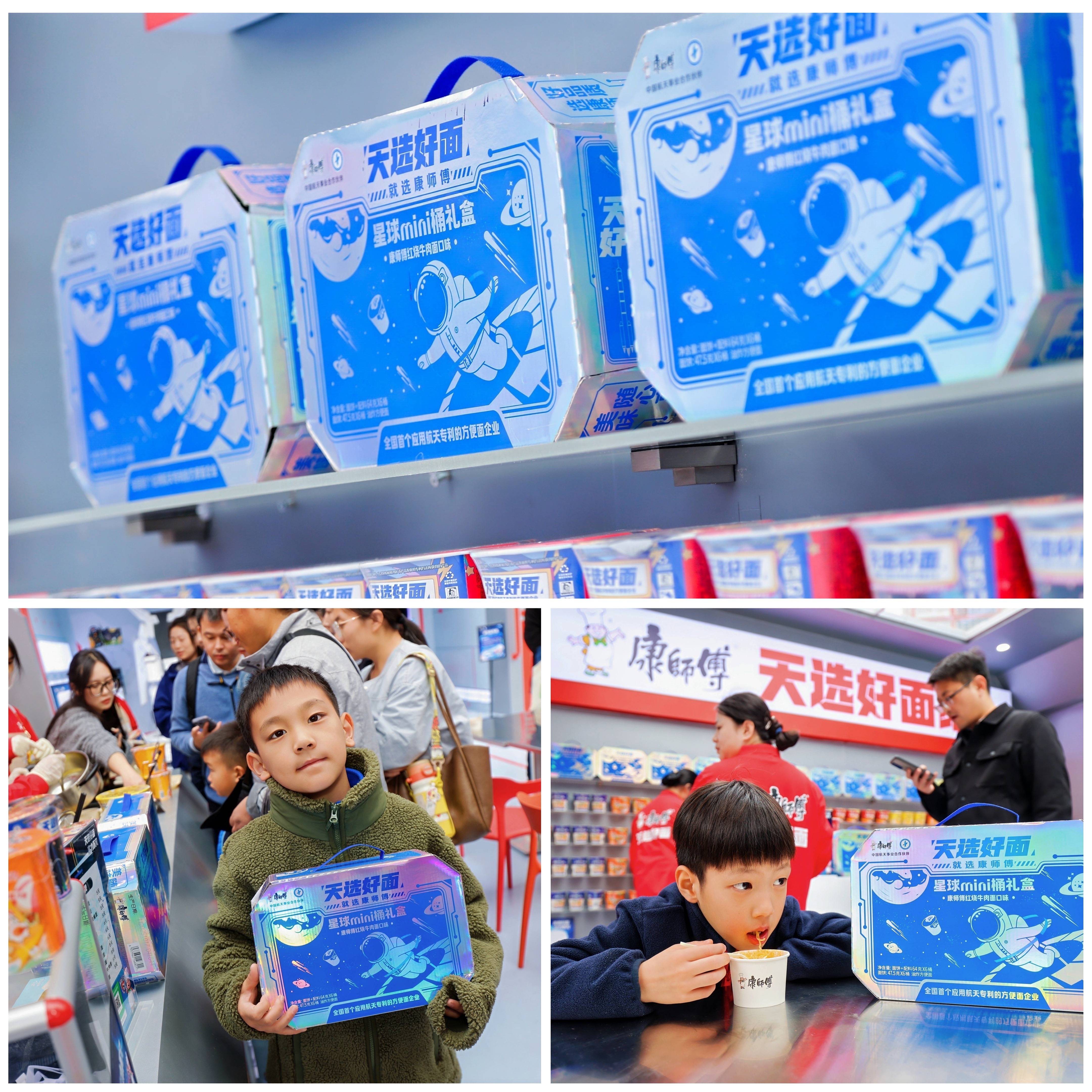 酒泉基地热面温暖科研人员之际,康师傅走进大众生活。近日,康师傅“天选好面馆” 登陆南京金鹰国际购物中心珠江路店,通过沉浸式体验,让市民近距离感受 “从星辰大海到餐桌” 的品质跨越。活动现场宛如微型航天美食科技馆:航天合作历程展区以图文形式,展现康师傅与中国航天九年携手历程;天选生产线展区呈现方便面从航天专利温控揉面、压延切丝到无菌封装的全流程;互动体验区的 4D 影院、VR 体验成为亲子热门打卡点,孩子们在趣味中了解航天科技如何赋能日常饮食。
