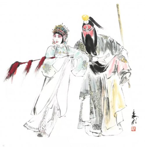 长袖善舞 论朱刚戏曲人物绘画 文|孔达达戏曲舞台上的一颦一笑被笔墨定格,宣纸上的线条仿佛还带着