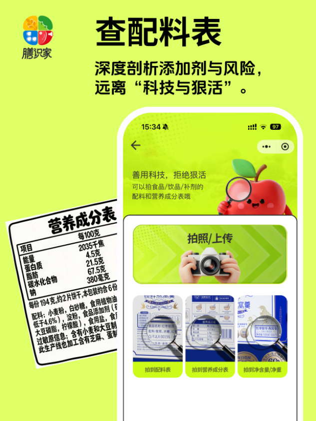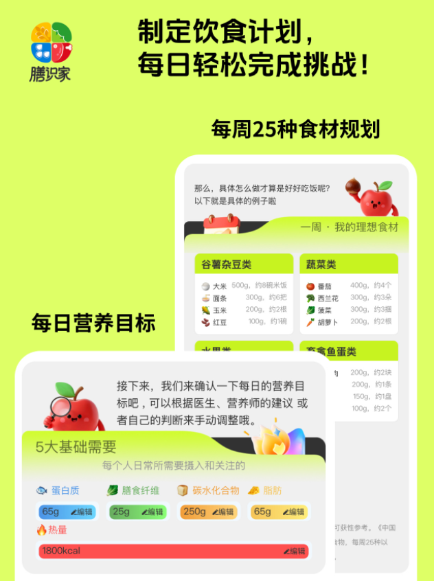 膳识家2.0的核心功能围绕《中国居民膳食指南2022》展开。软件通过“每日12种食材、每周最少25种食材”的挑战模式,将抽象的营养目标拆解为具体的打卡行动。此外,该版本整合了“吃什么呢”、“烹饪助手”、“查配料表”及“食查查”四大功能模块。其中,“查配料表”通过智能识别技术扫描包装,精准提示生产日期及保质期状态;“食查查”则聚焦商品来源验证与同类对比,辅助用户完成消费决策。