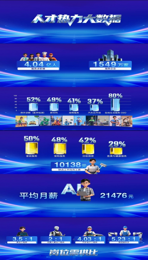 人才市场的数据则印证了产业升级的趋势。智联招聘数据发布官郭盛现场分享了“人才热力大数据”。哪些领域对人才的需求最高?什么行业的岗位增速最快?未来人才需要具备哪些能力?