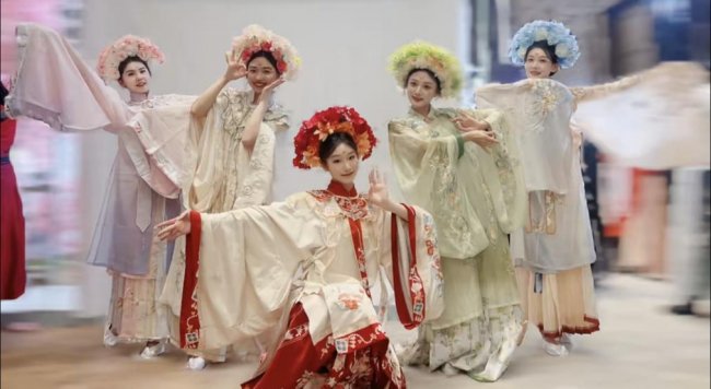 5月2日,以千年非遗簪花技艺为灵感,倾情呈现《非遗簪花引》主题舞蹈巡游。这不仅是一场视觉盛宴,更是一次穿越古今的文化漫步,邀大众共赴暮春之约,同赏非遗之美。巡游舞蹈演员们的妆发,承载着簪花这项古老技艺的精髓。发间以丝绸、绒花、细铜丝精心打造的“四季花簪”,仿照自然花卉形态,融合传统缠花、点翠工艺,绽放于乌发云鬓之间。随着簪花的颤影,步入一个花香满径、非遗绽放的五月天。